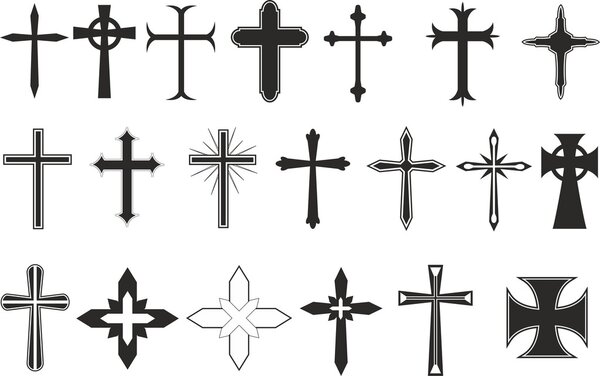 Christian silhouette cross isolated on white background. Collection of crosses Vector stock